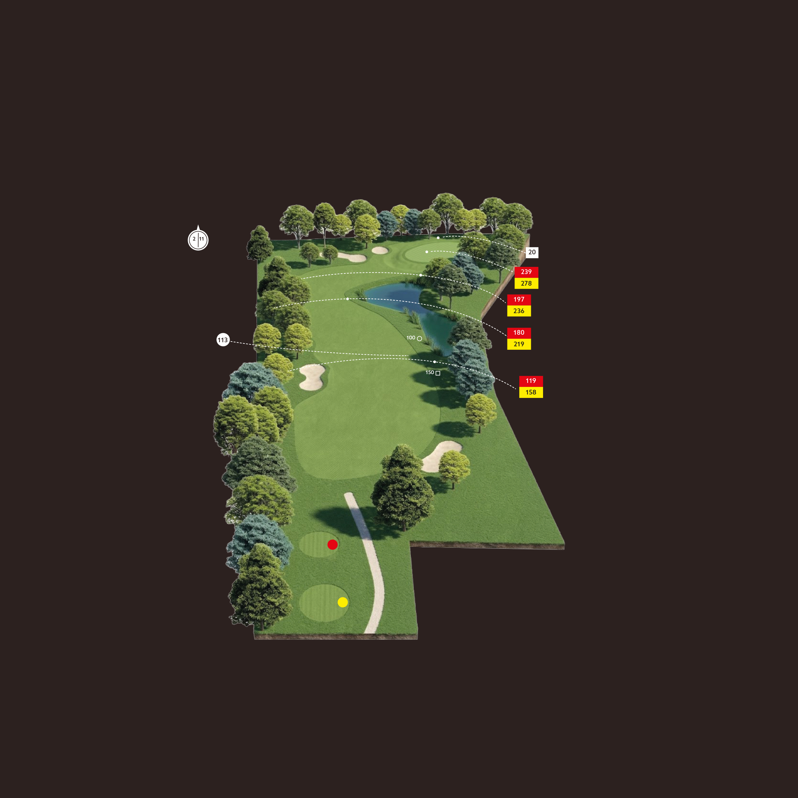 De baan omvat een 9-holes golfbaan en een 6-holes par-3 baan, waar doordacht ontworpen holes, waterpartijen en strategisch geplaatste bunkers zorgen voor een elegant en uitdagend spel.